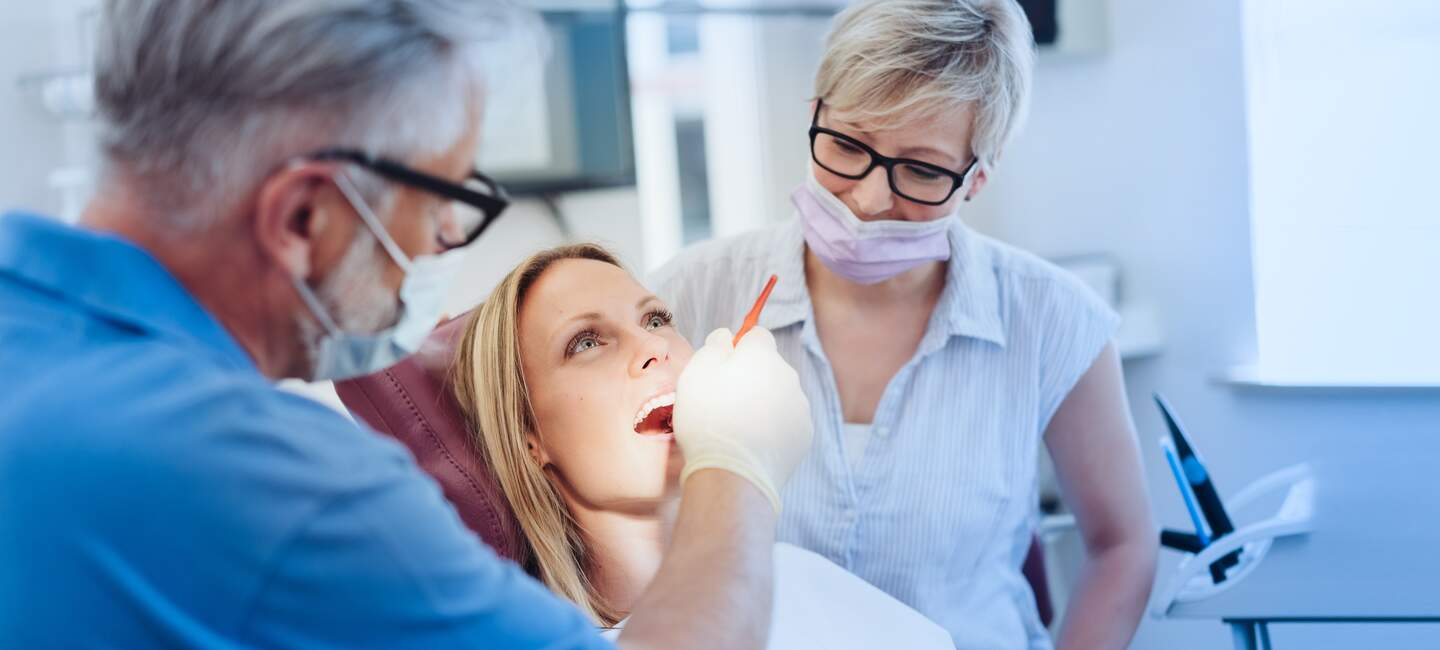 Während einer Zahnbehandlung rutscht der Bohrer ab und verletzt die Zunge des Patienten.